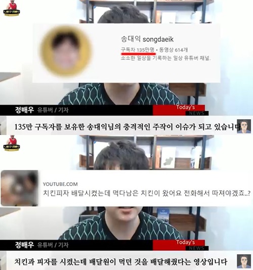 송대익(유튜버)는 자신이 주문한 피자가 6조각중 4조각만 왔으며, 치킨은 한조각이 물어뜯긴 상태라고 가게사장(주작)에게 전화를 했다.